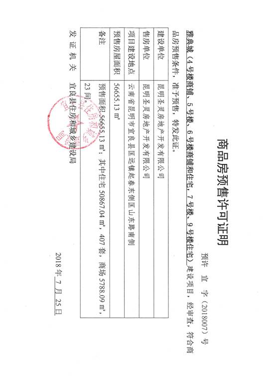 商品房预售许可--雅典城(4号楼商铺、5号楼、6号楼商铺和住宅,7号楼、9号楼住宅)