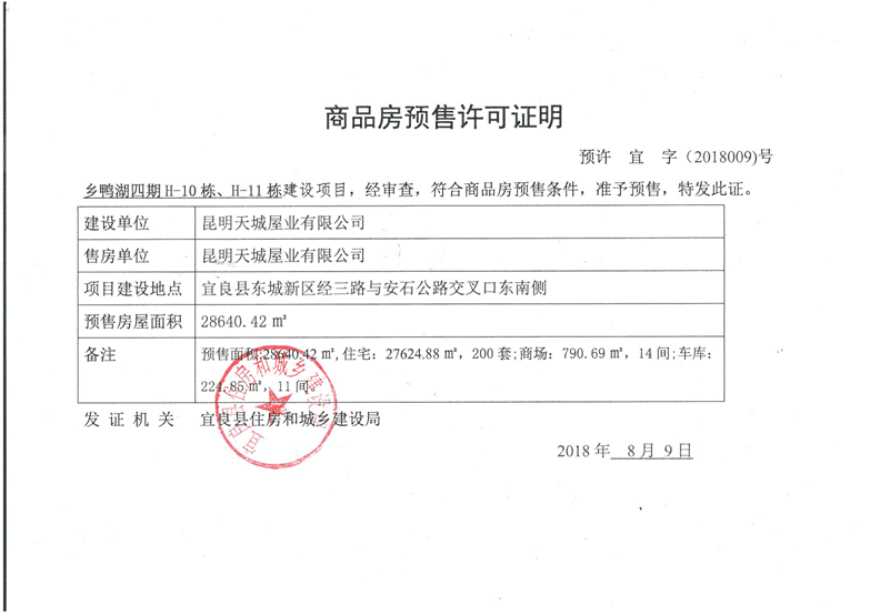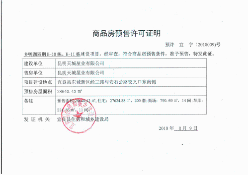 预售许可—乡鸭湖四期H-10栋、H -11栋建设项目 Copy1