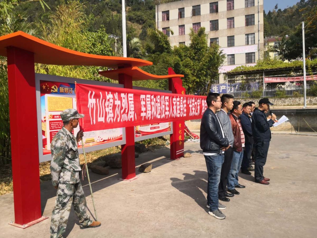继承拥军优属光荣传统——竹山镇为烈属、军属和退役军人家庭悬挂“光荣之家”牌启动仪式