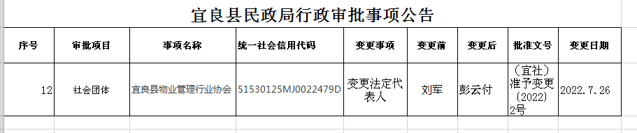 宜良县民政局行政审批事项公告(宜良县物业管理行业协会)