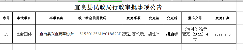 宜良县民政局行政审批事项公告(宜良县兴宜蔬菜协会)