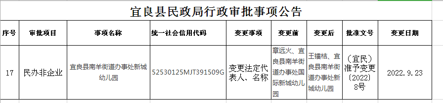 宜良县民政局行政审批事项公告(宜良县南羊街道办事处新城幼儿园)